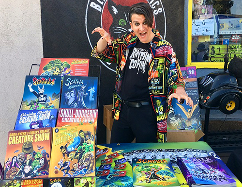 If you are a retail store owner, four of my books (Scapula: World's Worst Villain, Scapula and the Sinister Monster Doom Legion, Scapula: Doubly Dark & Deadly!, and Scapula: The Greatest Freakshow of All) are available at wholesale prices; please feel free to contact me regarding bulk sales and shipping rates. I am also available for in-store signings/promotional events for southern California comic and horror stores.