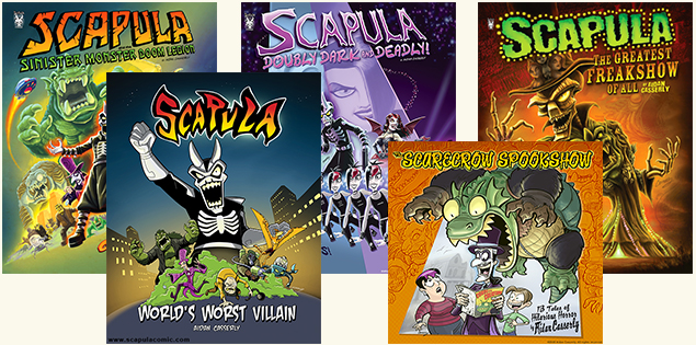 Fine reading and great art is available for you kind-hearted supporters! Books that I have created, illustrated, and self-published include the complete SCAPULA comic collections and the all-ages book The Scarecrow Spookshow. You can find these for sale in the SCAPULA COMIC STORE.